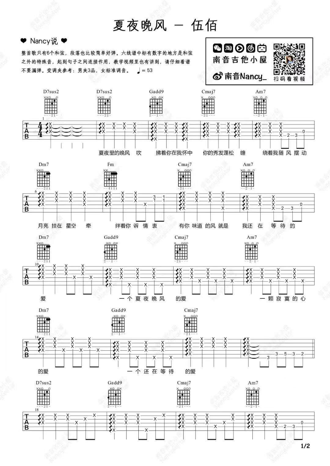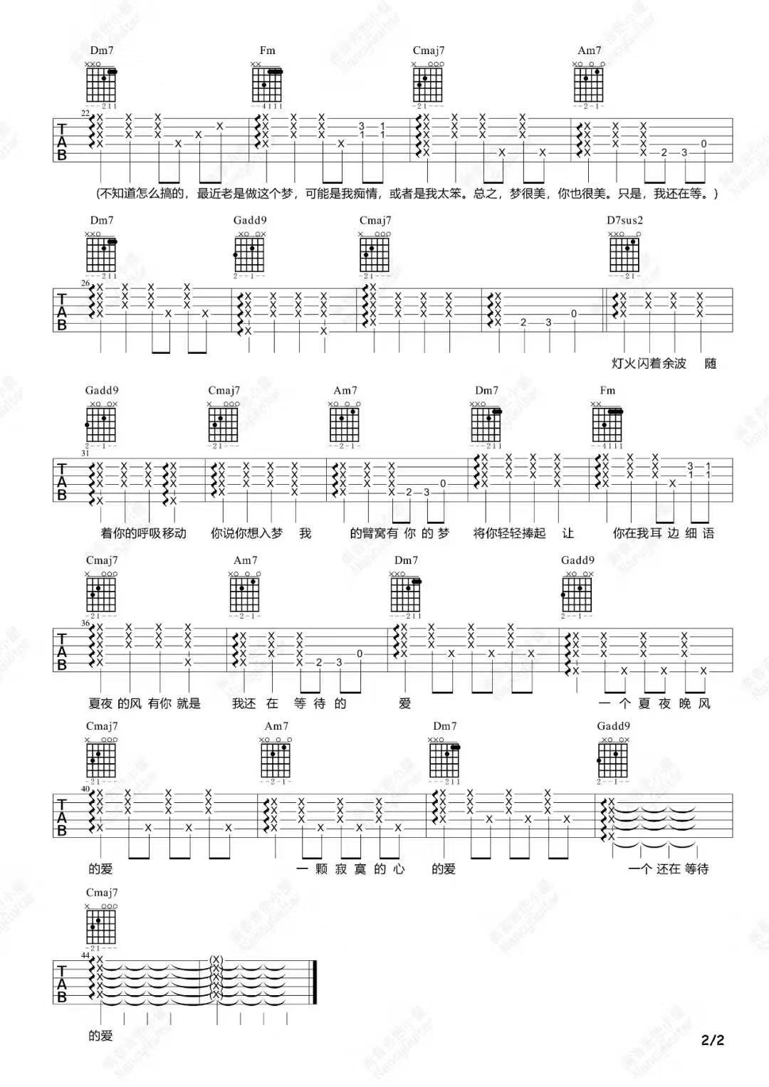 伍佰《夏夜晚风》吉他弹唱谱_南音小屋