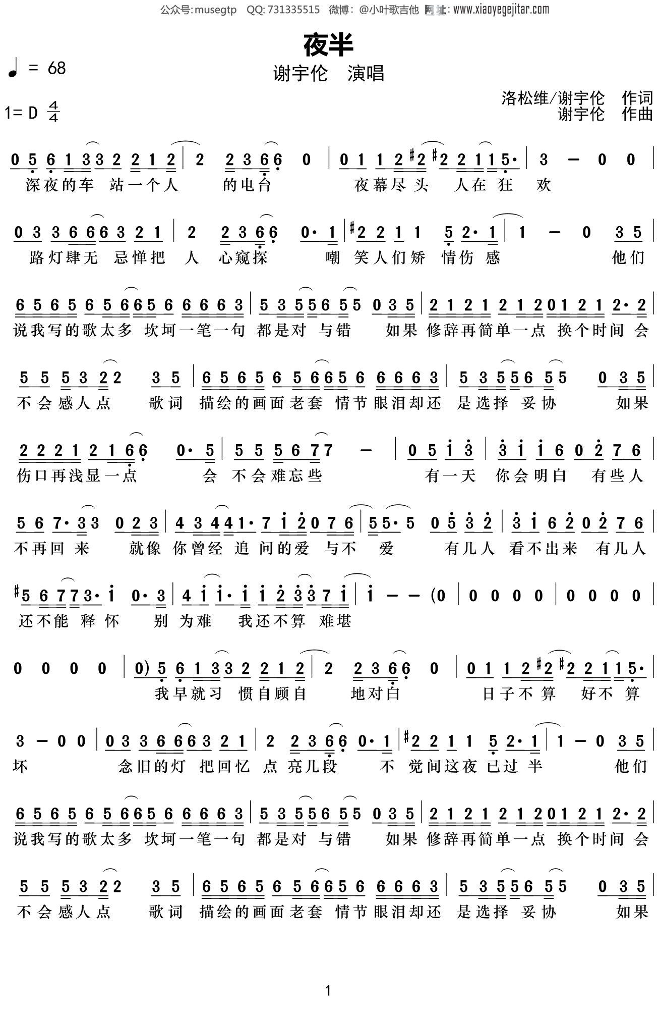 161【简谱】谢宇伦《夜半》钢琴谱单音独奏谱