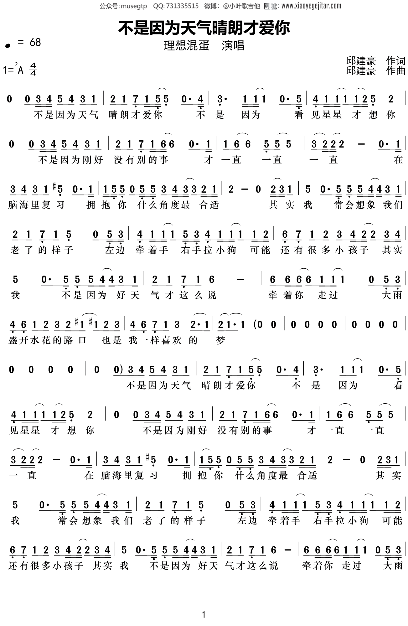 113【简谱】理想混蛋《不是因为天气晴朗才爱你》钢琴谱单音独奏谱